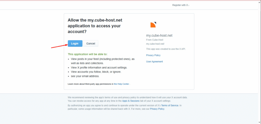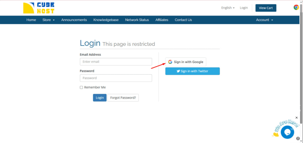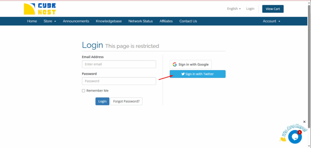 Cube-Host supports quick login via third-party services — Google and Twitter (X). This allows you to log in without entering your Cube-Host account password.