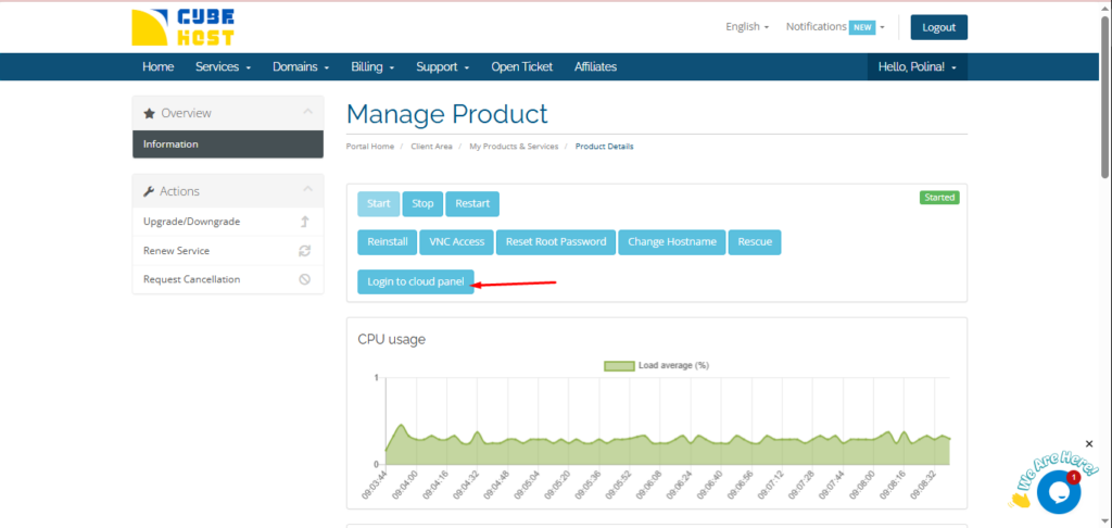 Login to cloud panel button.