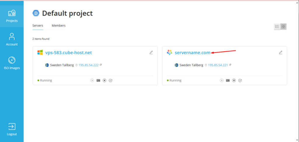 Click on the name of your server (for example, servername.com).