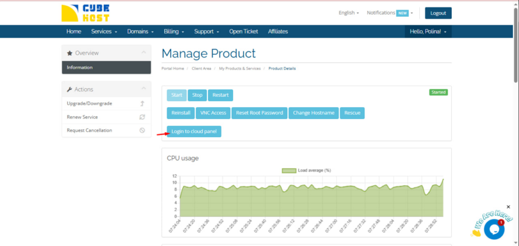Log in to your personal Cube-Host account and under Your Active Products/Services, click View Details next to your Windows VPS.