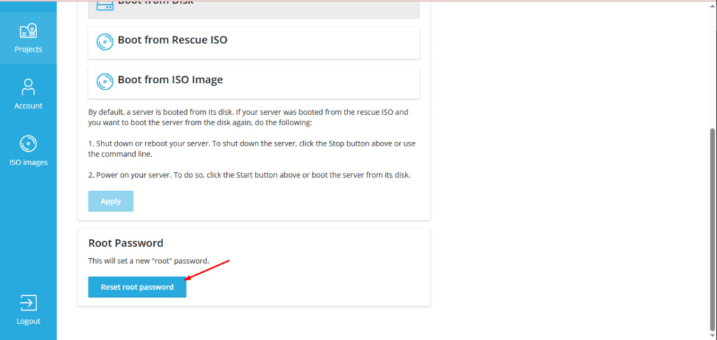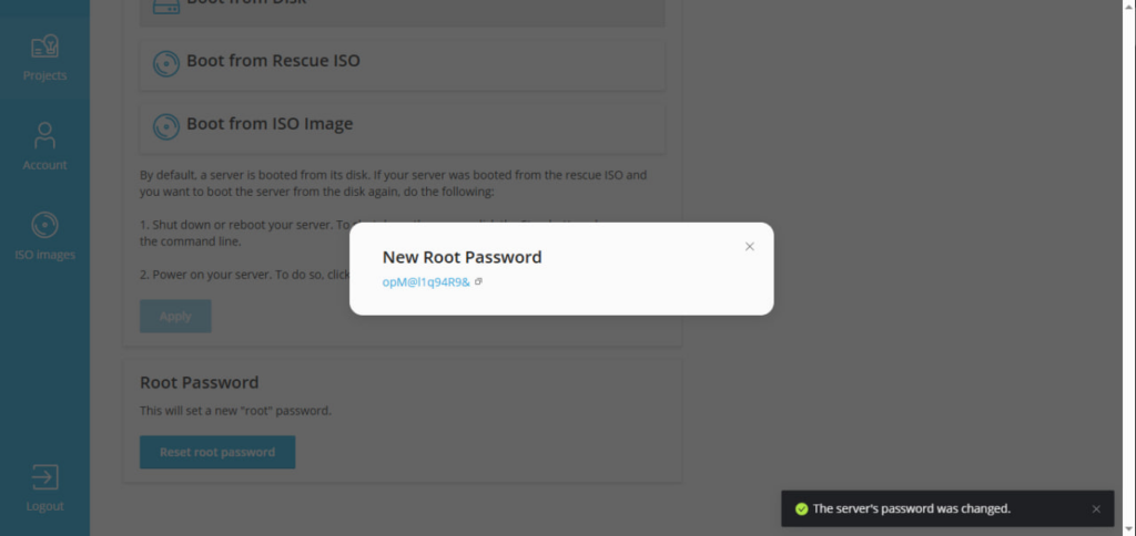 ⚠️ Please note: the server will be automatically restarted during password reset.